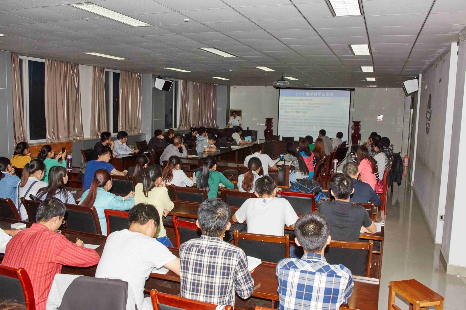 晚上,孙九林院士分别从“地学研究与科学数据”、“数据共享关键问题研究”、“地学知识服务思考”等五个方面介绍了“地学数据共享到知识服务”的相关情况。他指出,数据共享到科研信息化环境的核心为“数据”模型“计算一体化”发展思想,并详细介绍了国家地球科学数据共享平台数据资源共享运行情况。最后,孙九林院士结合系统论、信息论和控制论三种研究方法强调地学综合研究遇到的机遇与挑战。报告会休息期间,孙院士与参会师生交流,并对提问问题进行深入探讨。