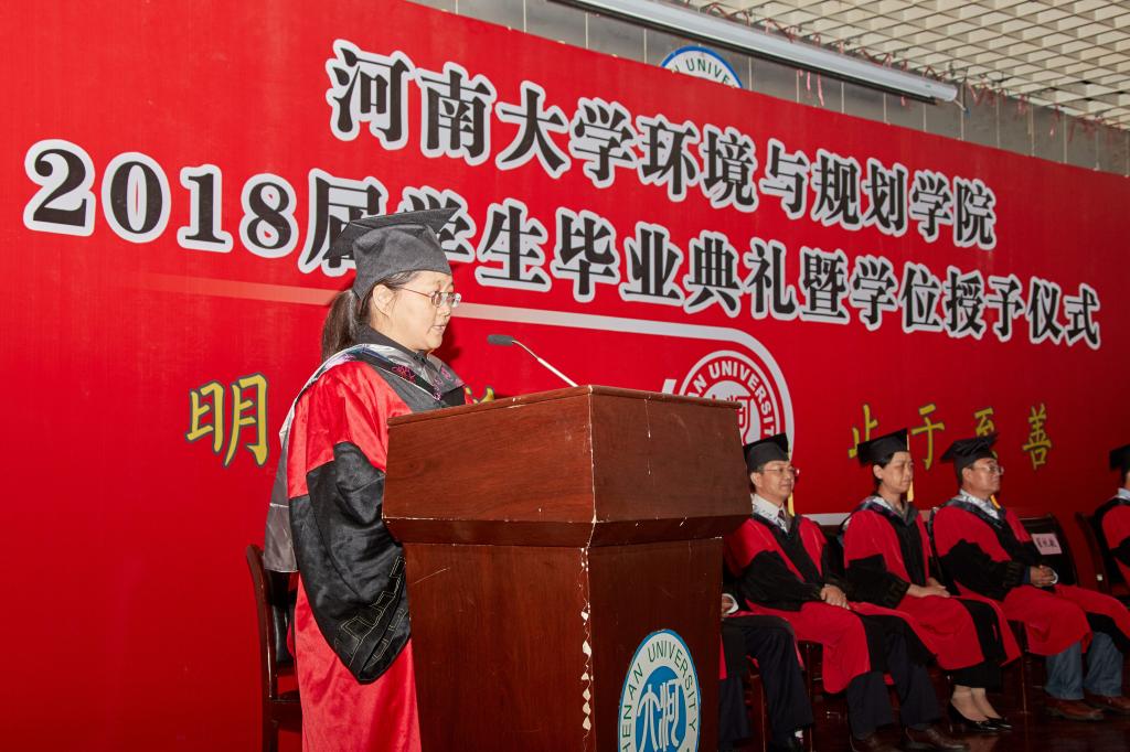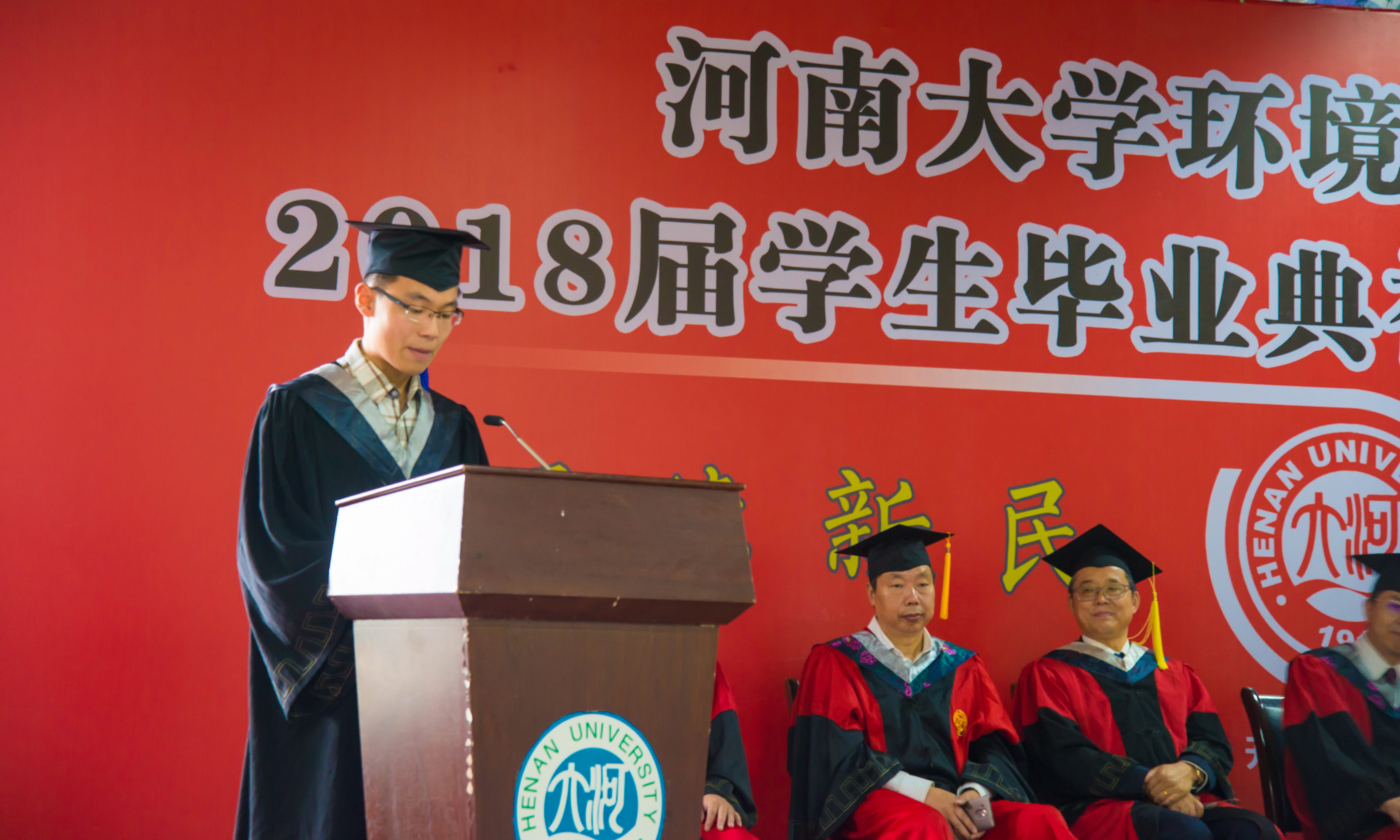 毕业生王松代表全体2018届本科毕业生向学校、学院和各位老师表达衷心的感谢,他在演讲中重温大学四年的点点滴滴,感谢老师们的辛勤栽培,一定会谨记老师们的谆谆教诲,成为河大精神财富和优良传统的继承者与传递者。2017级易思岐作为在校生代表为学长学姐们送上祝福,感谢他们无微不至的关怀和细心指导,祝愿他们早日实现自己的人生理想,在新的道路上一帆风顺。