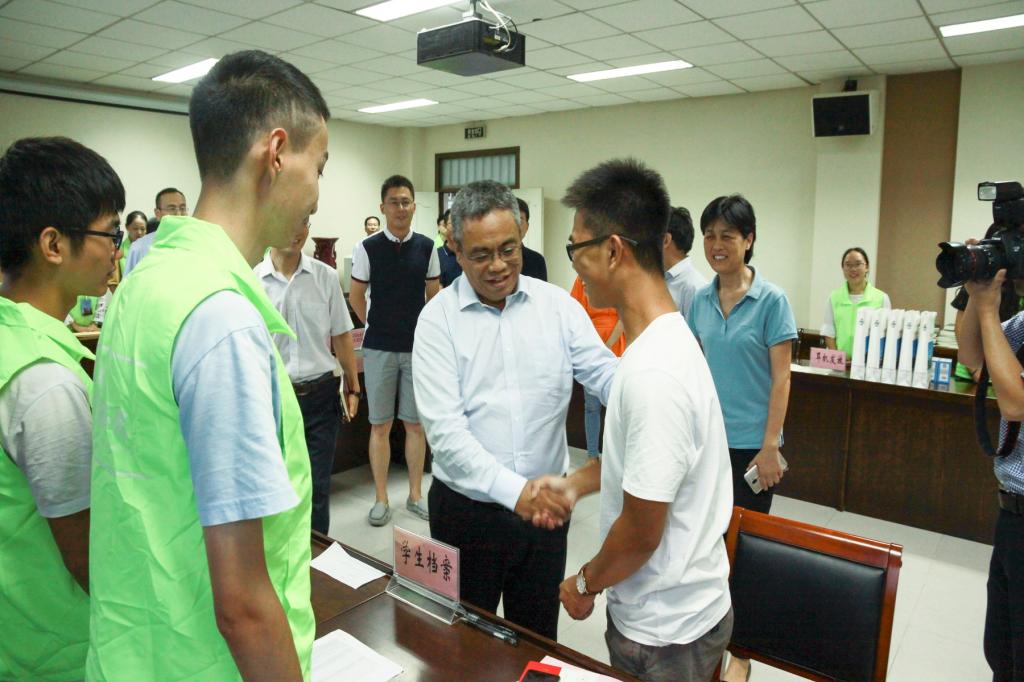 8月31日下午,秋风飒然,校党委书记卢克平莅临beat365官网视察指导迎新工作。