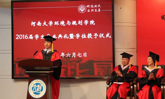 铁塔下的校园留给我们太多不舍和深深眷恋,不论走到哪里,河大是我们永远的家!“嵩岳苍苍河水泱泱”,全场齐声响起了《beat365亚洲体育在线官网校歌》。至此,环境与规划学院2016届本科生毕业典礼暨学位授予仪式圆满落幕。