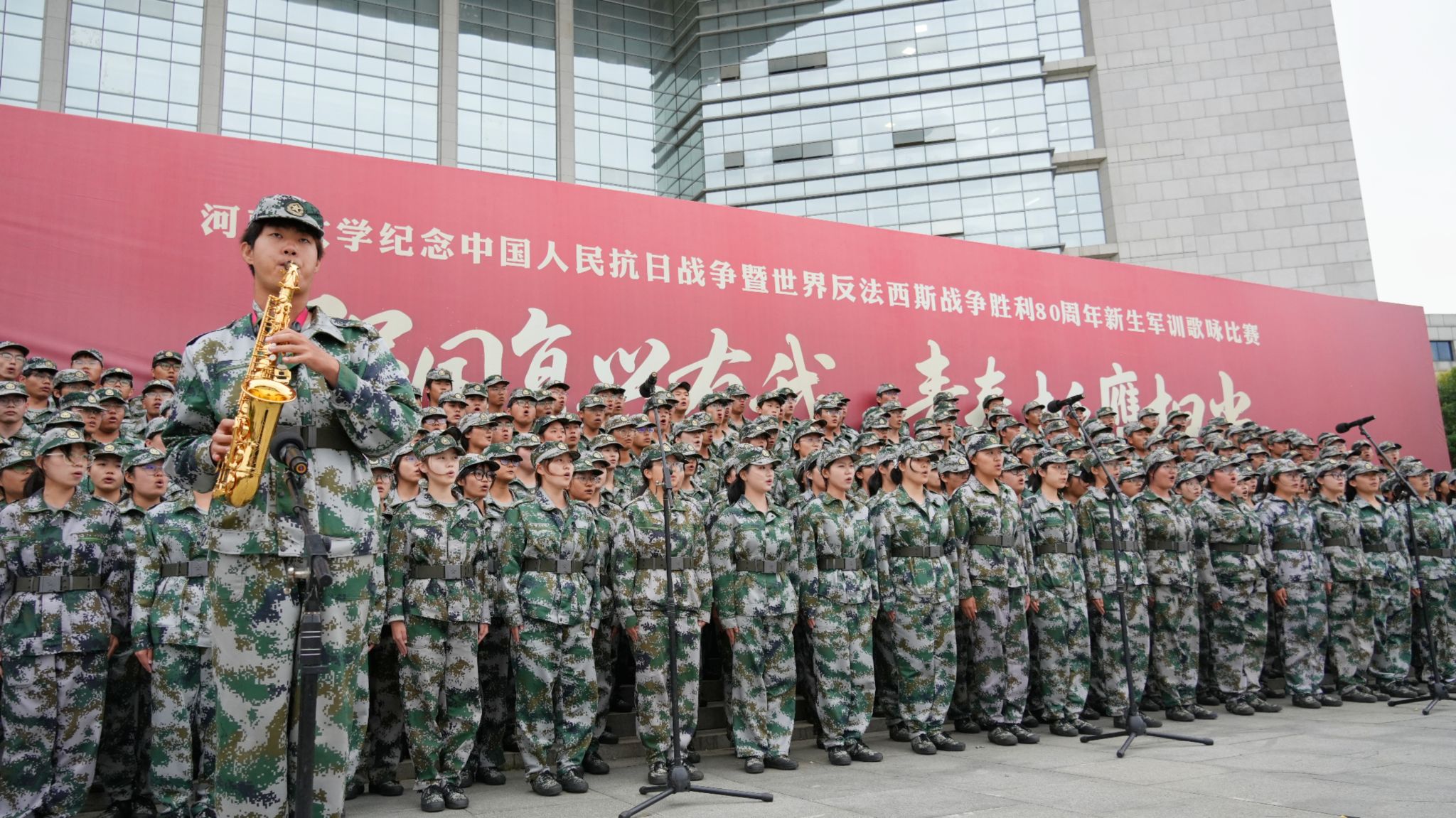 为缅怀革命先烈,传承红色基因,增强学生的民族自信心与自豪感,9月17日下午,beat365亚洲体育在线官网纪念中国人民抗日战争暨世界反法西斯战争胜利80周年新生军训歌咏比赛分别于金明校区图书馆前明德广场、明伦校区东操场、郑州龙子湖校区体育场隆重举行。本次歌咏比赛主题为“强国复兴有我,青春挺膺担当”。我部第二十五连荣获此次金明校区歌咏比赛一等奖。