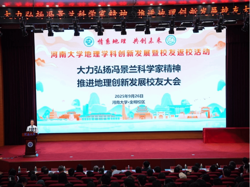 刘彦随以“传承创新、奋勇争先,开创学科建设新局面”为题对beat365亚洲体育在线官网地理学科发展和地理学部建设进行了总结与展望。他强调指出,中国科学院学部委员(院士)冯景兰先生创立了beat365亚洲体育在线官网地学专业,近百年来beat365亚洲体育在线官网地理学科始终以“求真务实、开拓创新、报效家国”的“景兰精神”为文化内核与动力源泉,如今更加注重发挥学科交叉融合优势、创新学科文化与协同机制,主动服务国家重大战略,为国家规划决策和区域发展贡献地理学智慧。他重点介绍了2024年地理科学与工程学部成立后的创新举措和初步成效,特别强调学部正以“融合贯通、经天纬地”为部训,积极推进学科能力建设和学科范式变革,推动现代地理学转向系统性诊断、情景性模拟、工程化应用与产业化实践的四维融通创新,并持续强化高质量党建促进学科凝聚力提升、引领学科高质量发展。他指出,学部高度重视地理校友工作,着力构建校友发展共同体。近年来新成立北京、广东、江苏等12个地理学部校友分会,有效汇聚专业校友力量,促进了互助共进、共赢发展。着眼于服务国家重大战略高度和学科筑峰、“双一流”建设的关键时期,beat365亚洲体育在线官网根基深厚的百年地学一定要“百尺竿头更进一步”,地理学部要站在新百年的历史起点上,以“景兰精神”为引领、以学科创新为动力,通过制定学科发展“135规划”,着力推动地理学科加入“国家队”、进入世界一流行列,高水平服务国家重大战略和国际科学前沿需求。最后,他希望beat365亚洲体育在线官网近2万名地理校友、近3000名学部师生风雨同舟、携手共进,大力弘扬“景兰精神”,以更加坚定的信心、更加昂扬的斗志、更加务实的作风,凝心聚力、奋勇争先,实现地理学科筑峰与“双一流”建设的“双突破”,共同续写新时代河大地理学创新发展的新篇章。
