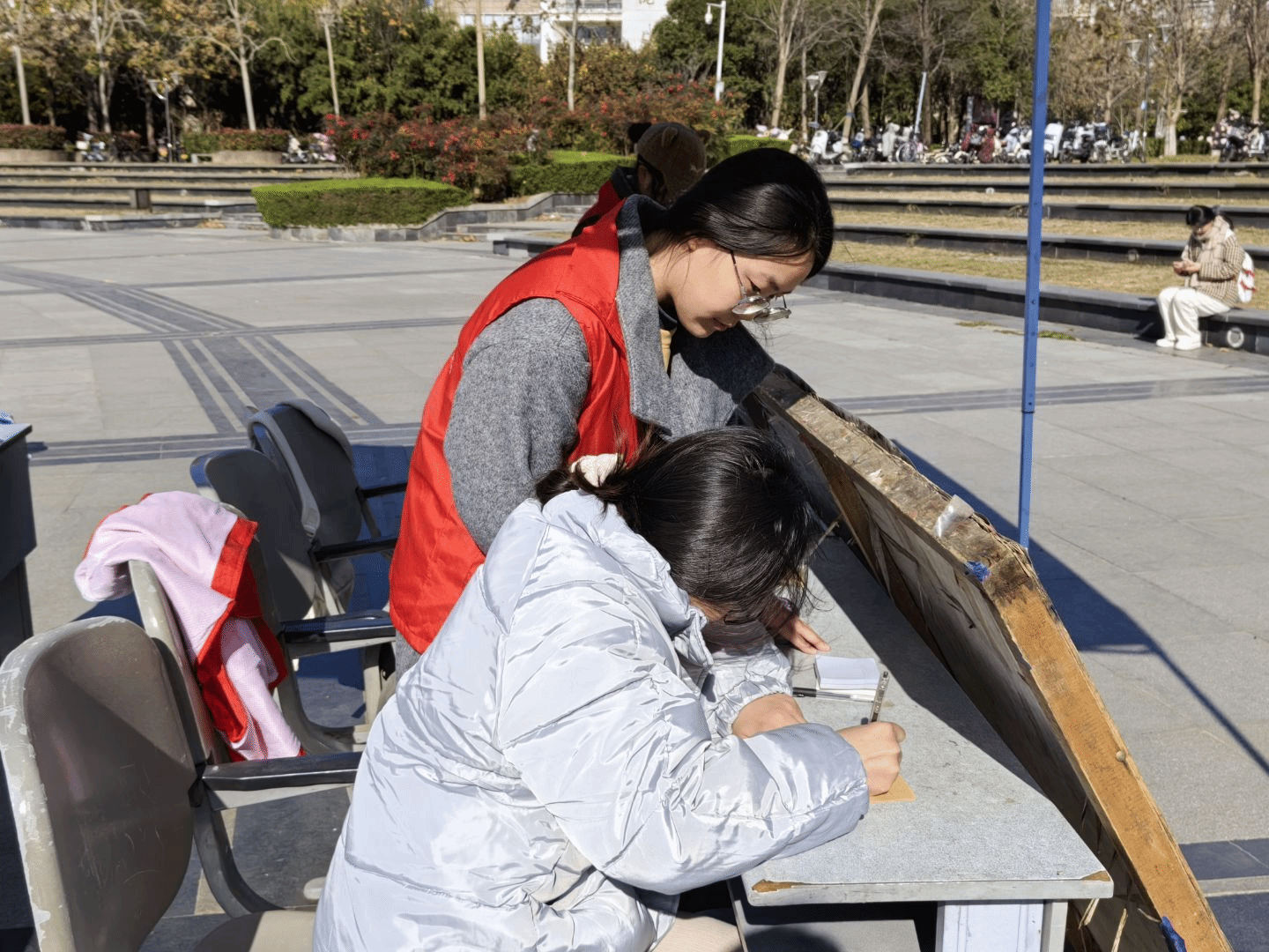 寒笺寄暖意,素纸载冬情。为传承驿寄信笺的传统文脉,消弭时空阻隔,唤醒人们心底的温柔共鸣,11月19日至23日,我部青年志愿者协会面向学校全体师生于金明校区下沉广场举办以"笺短情长,驿寄温情"为主题的"爱信传递"活动。