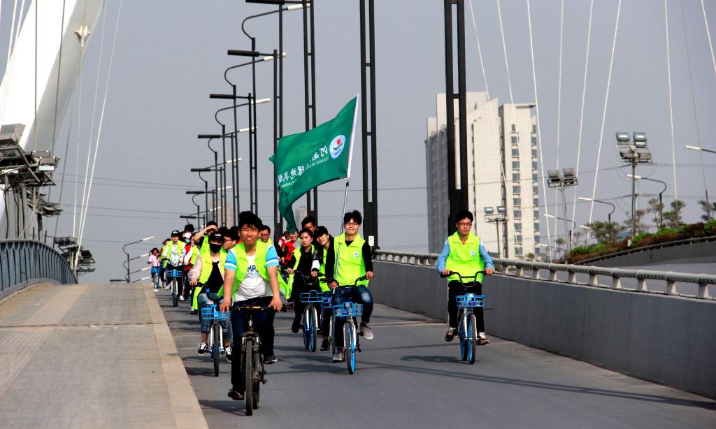 为提倡绿色健康的出行方式,传递节能减排的环保理念,4月15日下午,beat365官网开展以“踏实环保科普‘球’生路”为主题的环保骑行活动。参与本次骑行活动的2016级、2017级学生共七十余人,从beat365亚洲体育在线官网金明校区出发前往开封汴西湖景区,行程近10公里。